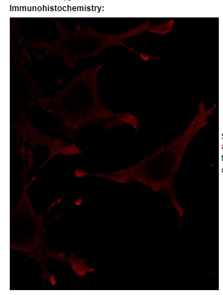 Staining of MEF cells (treated with PDGF) with anti Ga13 GTP monoclonal antibody showing the localization of Gα13 GTP in the leading edge of migrating cells. |