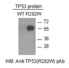 Immunogen: A synthetic peptide near the C-terminus of human TP53 which includes the mutation of R282W. |